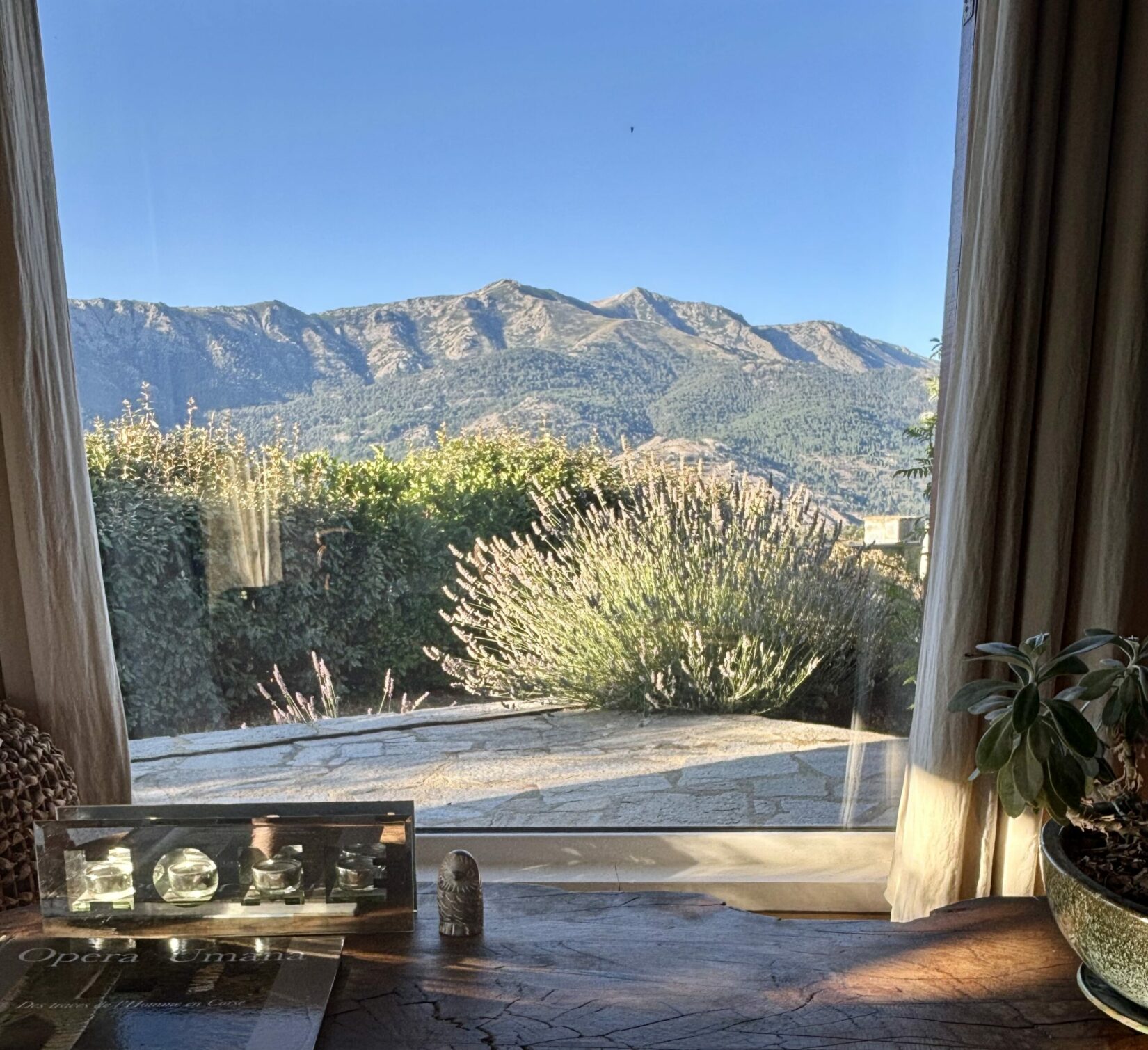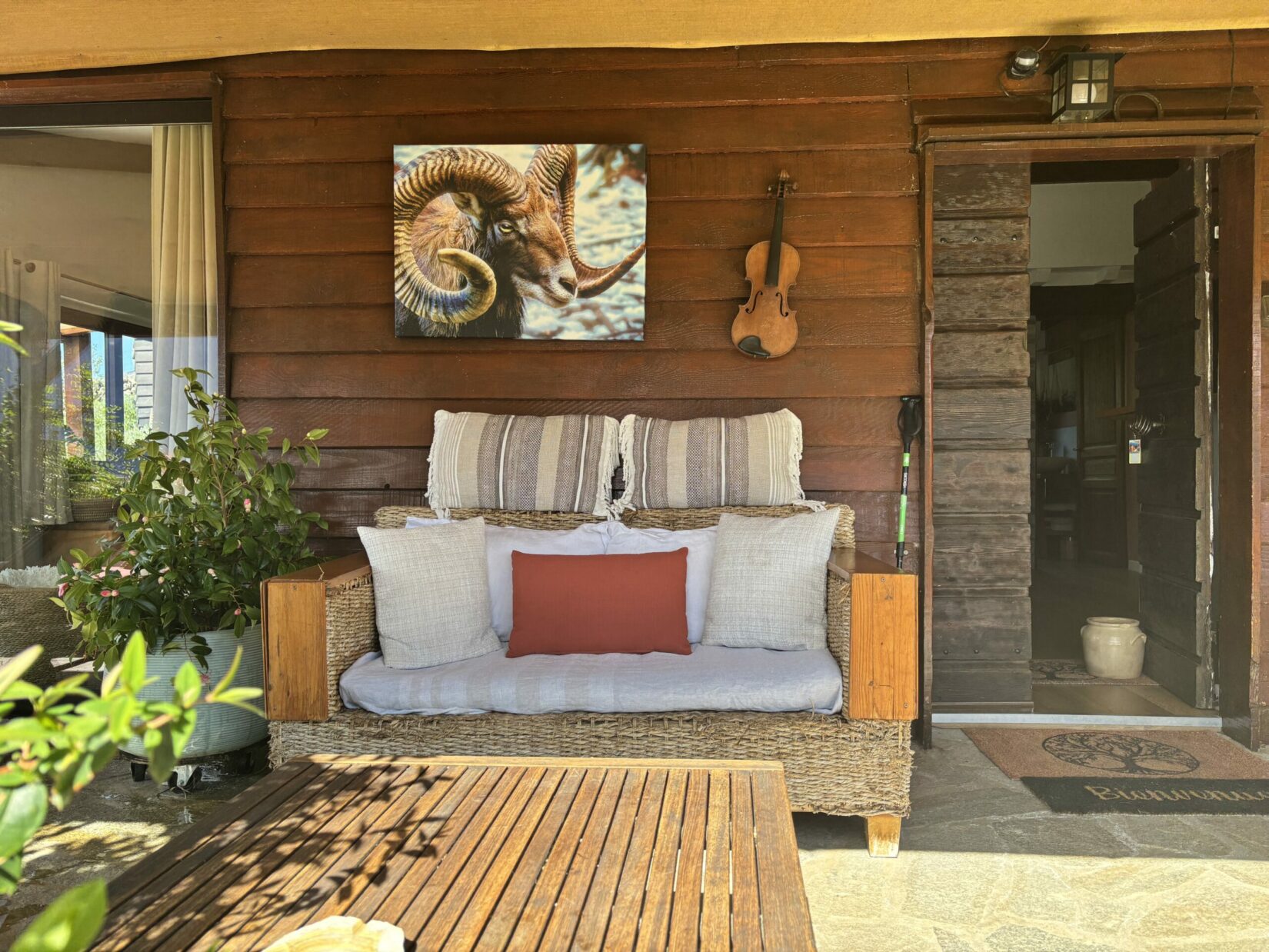 Au-dessus de la maison, un couple de milans plane presque chaque jour, dessinant de larges cercles dans le ciel. Autour, les abeilles butinent, et parfois quelques petits visiteurs s’invitent à l’intérieur : une araignée discrète, une souris curieuse ou une mouche égarée. La vie circule librement, entre dedans et dehors, c’est aussi ce qui fait le charme du lieu.